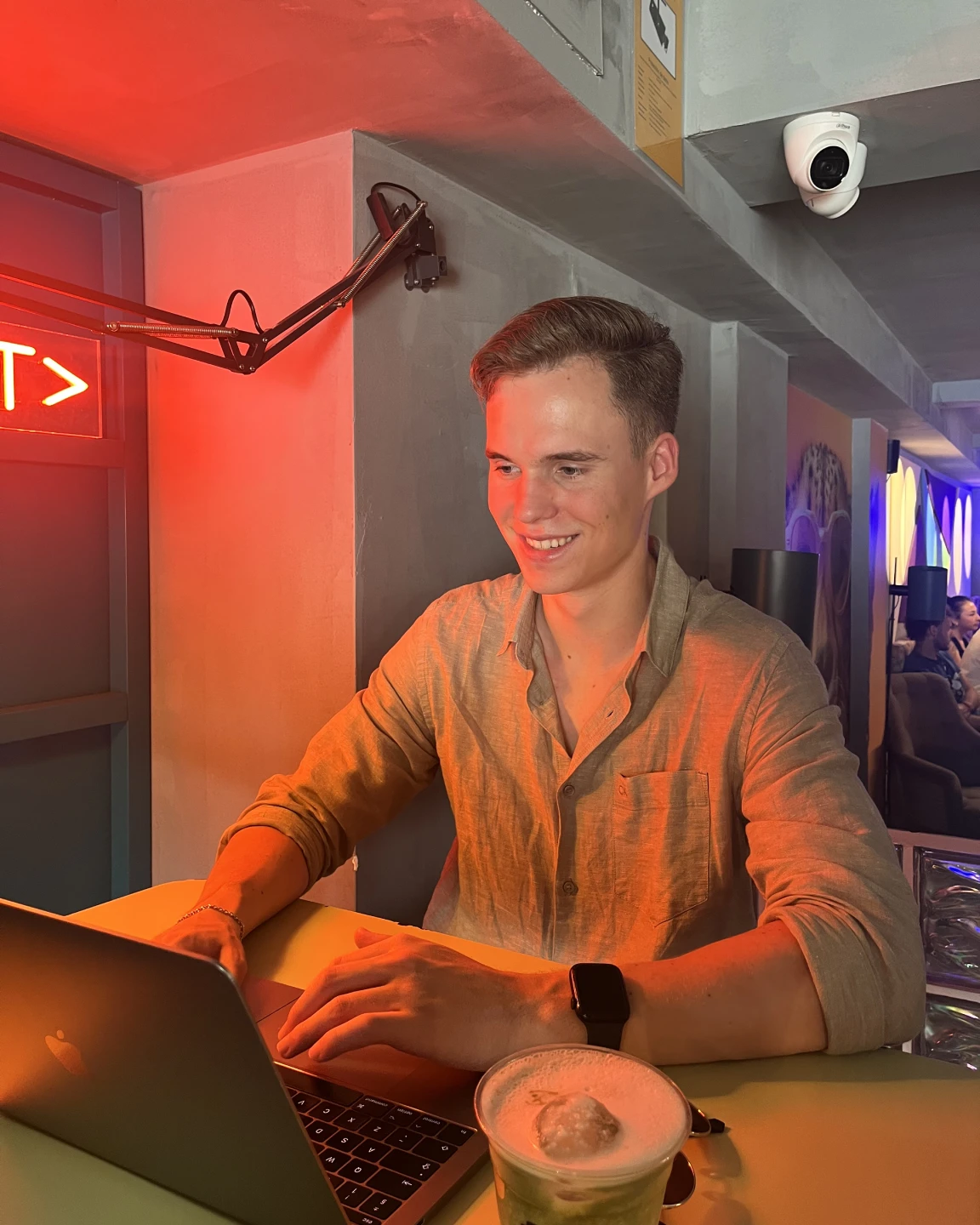 De part-time baan in de online marketing was gevonden bij een geweldig bedrijf in Almelo. Hier heeft hij nog veel meer kunnen leren over online marketing. Na ongeveer een jaar begon hij interesse te krijgen in remote werken. De keuze voor Valencia was snel gemaakt aangezien hij al veel positieve verhalen had gehoord over de stad. Een aantal maanden remote werken verder en hij wilde eigenlijk niet meer terug naar Nederland! Dit moest echter wel om de Master af te ronden.